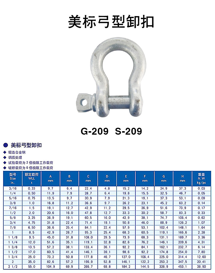 美標(biāo)弓型卸扣(G-209 S-209)