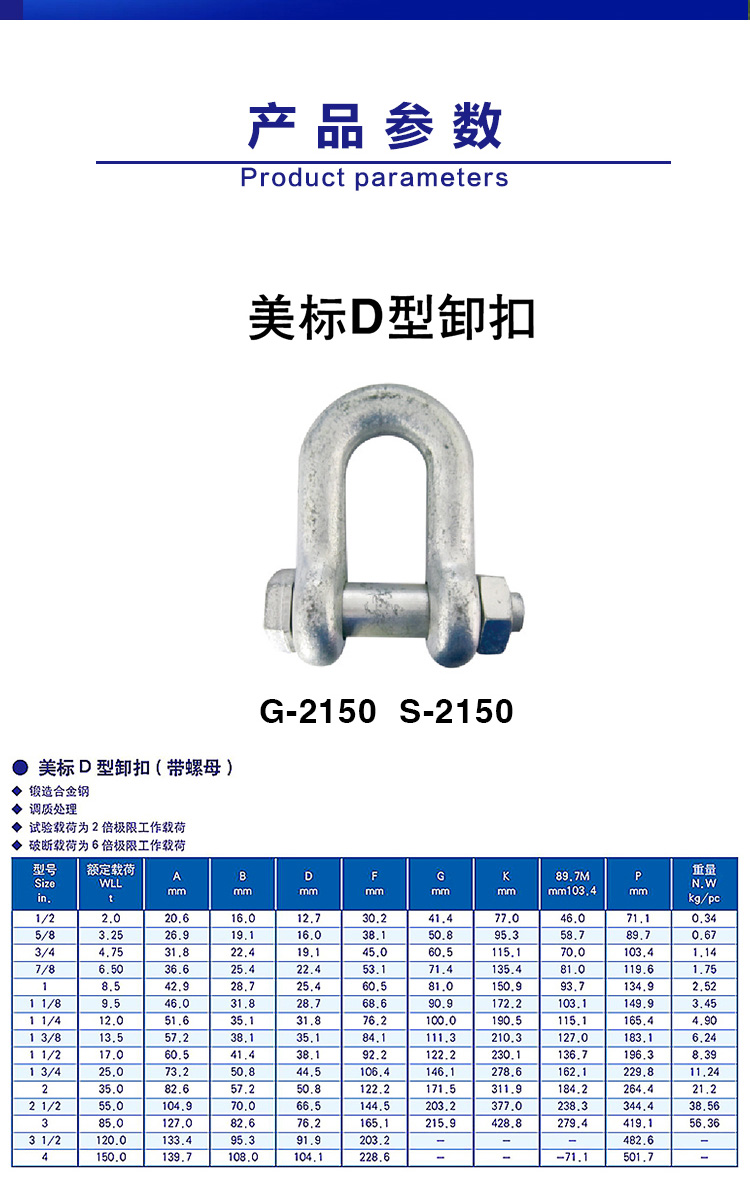 產(chǎn)品中心 當(dāng)前位置:首頁(yè)產(chǎn)品中心—美標(biāo)D型卸扣(G-2150 S-2150)
